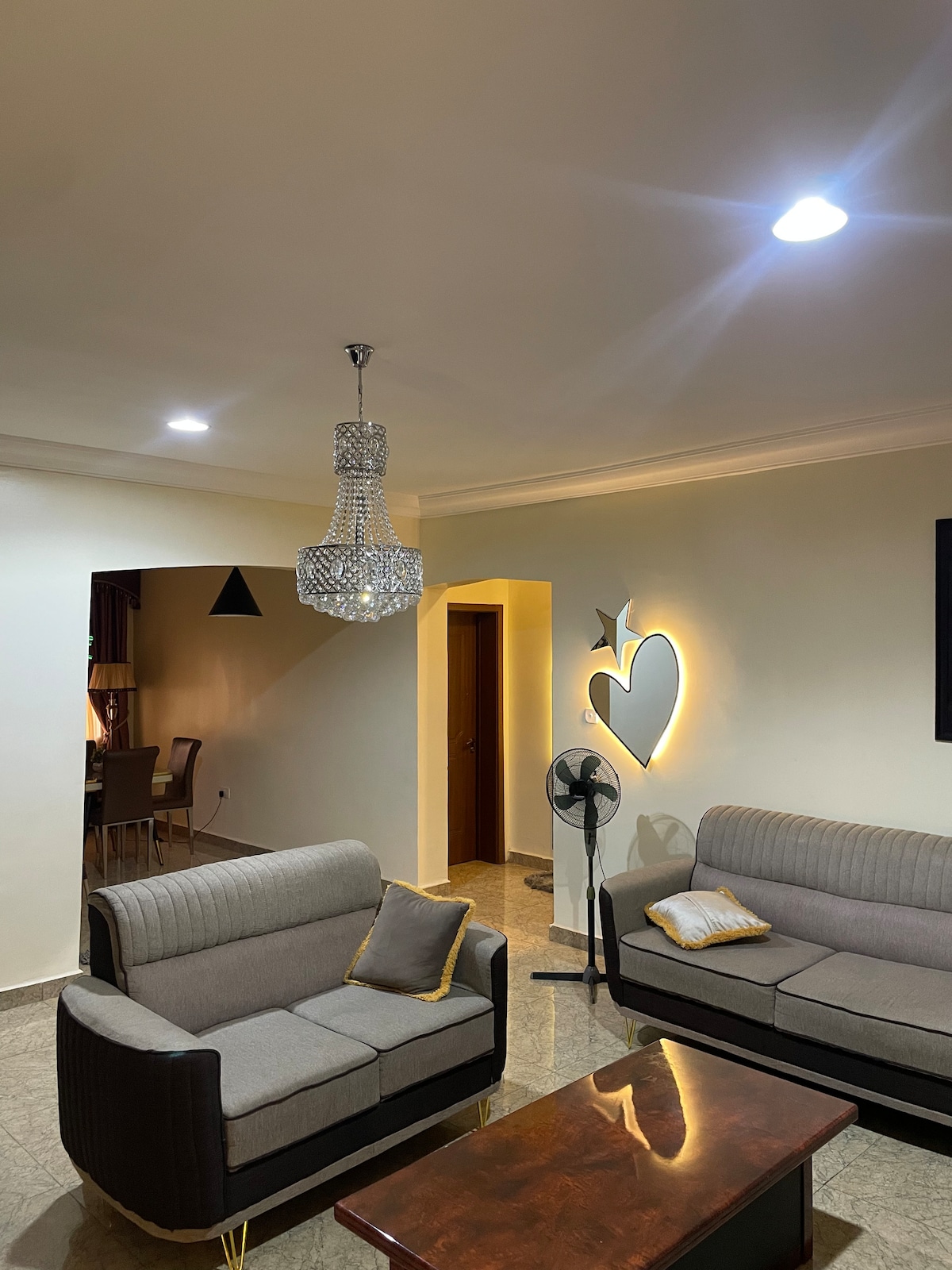 Fully services 3-Bedroom apartment with a fitted cinema, spacious and in a secure,calm and serene environment. 24/7 Electricity, uninterrupted internet service, fully equipped kitchen, washing machine, state of art facility… Indeed! Home away from Home.