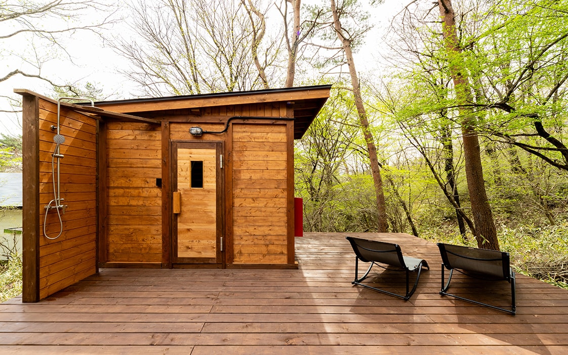 森の中の秘密基地、サウナと静けさにひたるプライベートサウナ付ヴィラ