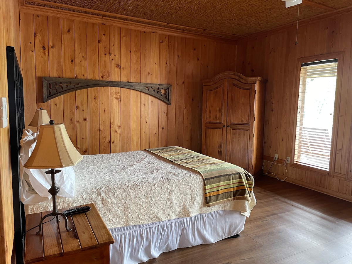 このユニークなスタイルの低層広々としたキャンプハウスで、平和とリラクゼーションを見つけ、魚が釣れれば幸いです。 ケーン川の自然の静けさに包まれて、朝や夕方を過ごしましょう。 ご家族やご友人グループ、またはおひとり様にも最適です。 釣り竿、カヤック、ボート、用具をお忘れなく。ウォーターフロントのパティオで集まるか、キャンプの居心地の良さの中で集まるか...ご自身でお選びください!湖や作物の風景を楽しんだり、歴史的なナチトーチェス市内までわずか10分で行くこともできます。
