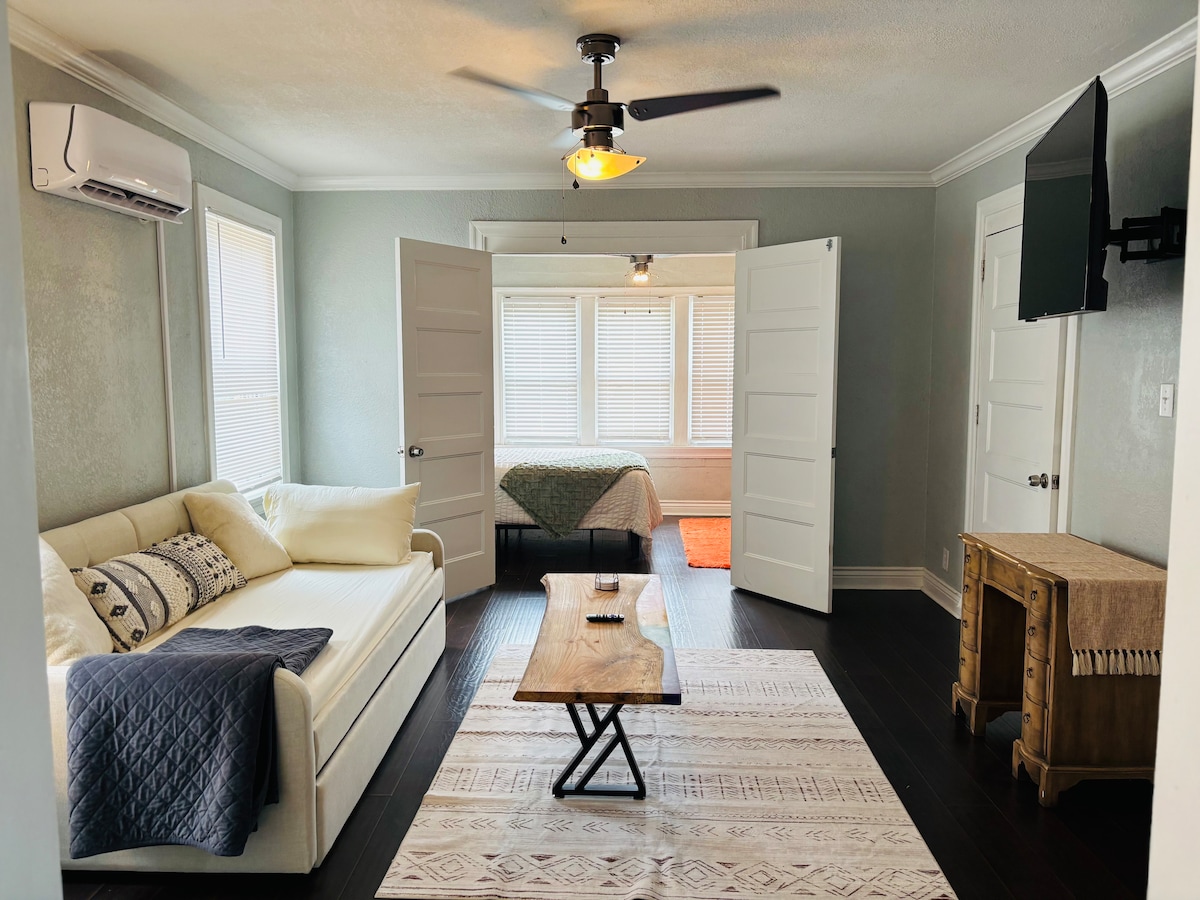 オクラホマシティの中心部にある裏庭のゲストハウスで、最高のローカルスポットをお楽しみください! このワンベッドルームスタジオ(250平方フィート)は、コーヒー、軽食、快適な寝具など、快適な滞在に必要なものがすべて揃うように、考え抜かれたデザインになっています! このゲストハウスは私たちの家の裏にあり、安全性を高めています。 私たちはメインの家と裏庭を占めています。 私たちには、おとなしく、外にいる間は監視されている、フレンドリーなグレートデーン(ウィンストン)がいます。 宿泊先へは車道を通ってアクセスできます。
