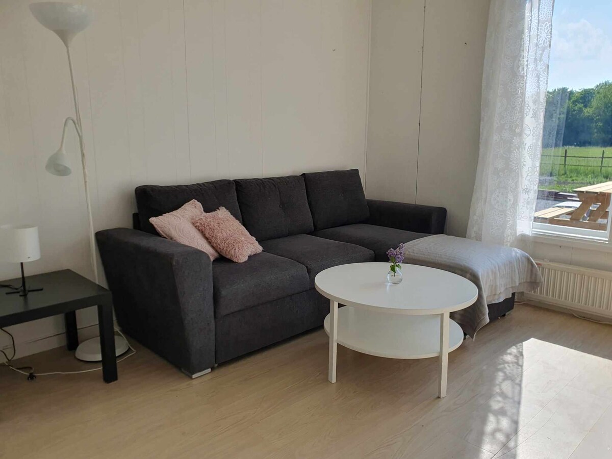 ブレーキンゲ滞在中にアグダトルプの新しく改装された古い牛乳室に滞在し、農場の本物の環境を体験してください。 カールスクローナ中心部まで車でわずか15分。 お部屋は1 ~ 2名様におすすめです。 - 小さなキッチンとダイニングエリアを備えたお部屋。 折りたたんでダブルベッドにできるシングルベッド。 ベッドリネンはご自由にお使いいただけます。 - トイレ、シャワー、サウナ付きバスルーム。 バスタオルとタオルをご自由にお使いいただけます。 夏の間は、家具とバーベキューが備わった広いパティオ。