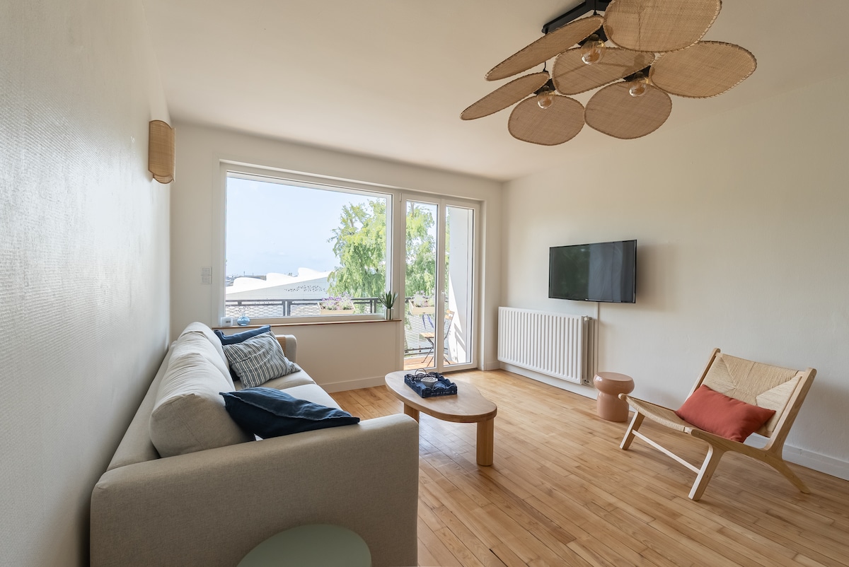 リビングのソファにゆったりと座り、海を眺めながらゆっくりとした時間をお過ごしください... 当アパートは「グランブルー」の6階(最上階)に位置しています(エレベーターでアクセス可能)。 ここからは、天候が良ければ、一方ではブーローニュの灯台、もう一方ではオパール海岸とイングランドの崖を眺めることができる、素晴らしい海の景色が楽しめます。 ビーチへはアパートのすぐ下にある子供用プールから直接アクセスできます。