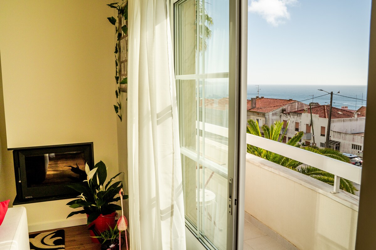 ナザレのビーチから徒歩圏内の海を眺めるアパート