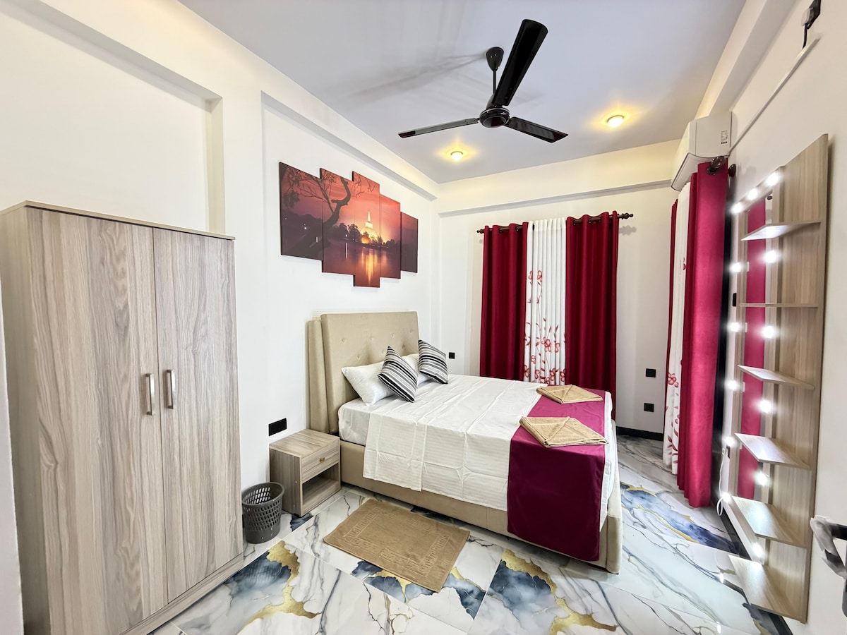 このスタイリッシュなリトリートは、2名様に最適で、快適で便利な滞在を提供します。カダワタインターチェンジからわずか10分、国際空港から35分、コロンボから13 kmの場所にあります。このお部屋には、快適なベッドルーム、小さなリビングとダイニングエリア、モダンな家電が備わったシックなキッチンがあります。エアコン、高速Wi-Fi、無料駐車場のある安全なエリアの快適さをお楽しみください。のんびり快適に過ごすのに最適です!