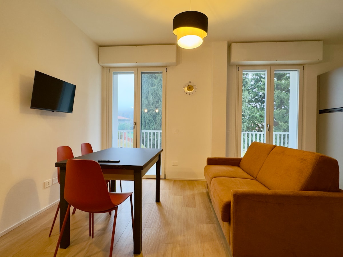 ガルダ湖のパノラマビューが楽しめる、プールと庭に直接アクセスできる54平方メートルのアパートメント。最高の立地で、プライバシーが確保されています。 庭とプールのご利用、広々とした屋外スペースでのプライバシーとリラックス。 2015年に建てられたモダンな建物。 専用玄関、広い駐車場。 徹底的な清掃。 完全なプライバシー。 小型のペット可。