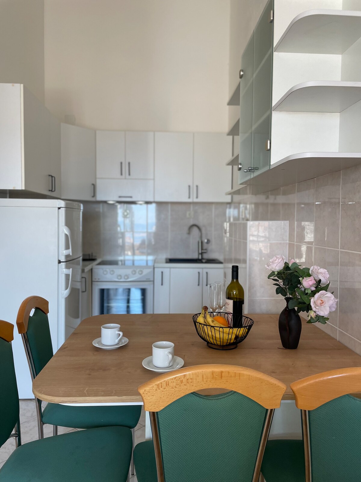 モダンな海辺のアパートへようこそ! リビングルーム、寝室、そして大きなプライベートテラスからは、素晴らしい海の景色を楽しめます。リラックスしてくつろぐのに最適な場所です。 アパートは明るくスタイリッシュなインテリアで、静かで平和なエリアにあり、落ち着いて快適な休暇に最適です。バルコニーでコーヒーを楽しむにも、海に沈む夕日を眺めるにも、このアパートには忘れられない滞在を過ごすための魅力と景色がすべて揃っています。