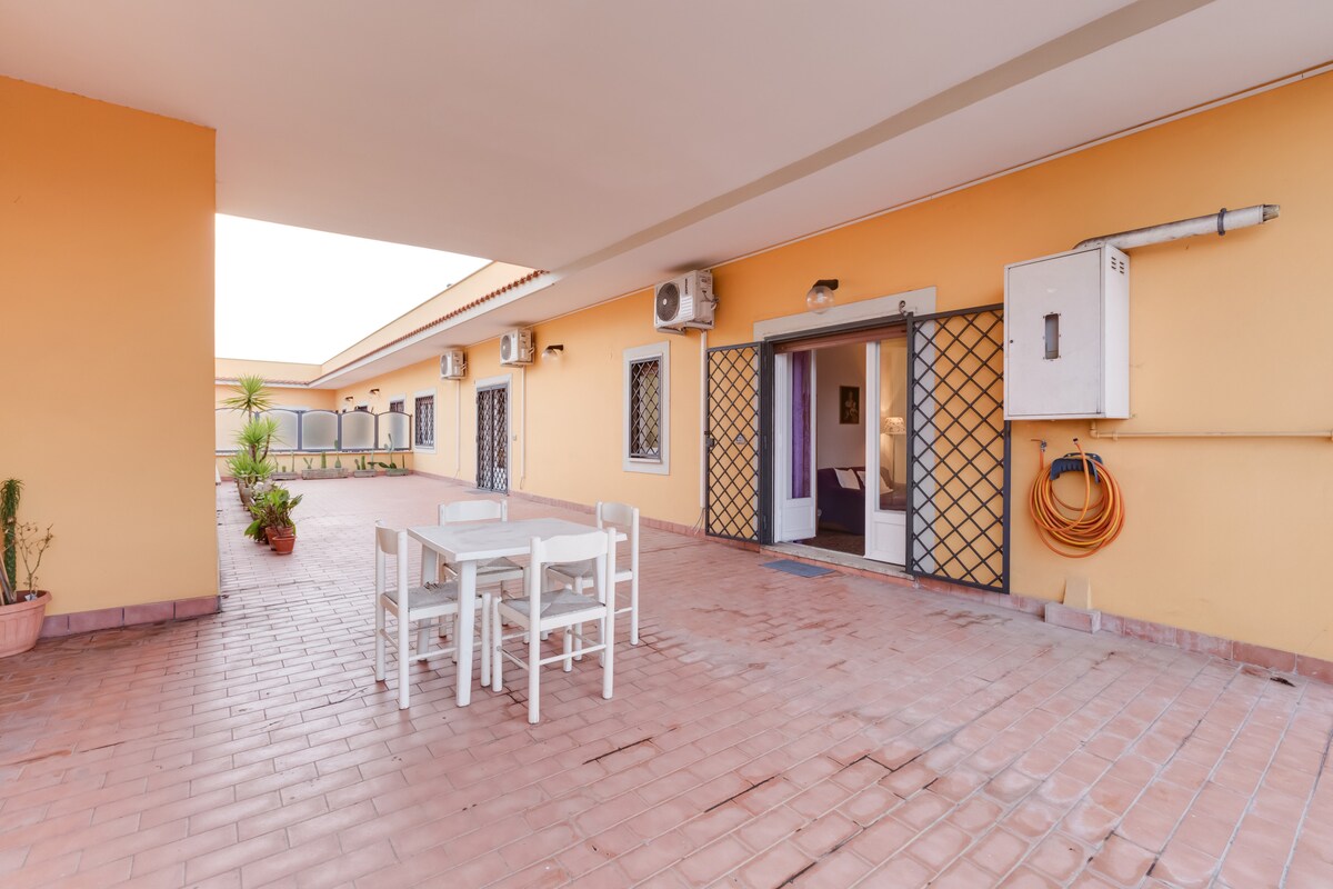 美しい専用テラス付きのエレガントなペントハウスアパート。 ローマ探索に最適な立地:コロッセオまでわずか数分、バチカンまで約10分です。ガルバテッラ地下鉄駅まで徒歩5分なので、市内全域へのアクセスも便利です。快適で静かな環境で、長期滞在にも最適です。空港への電車のアクセスが非常に良好です。近くに無料の路上駐車場または有料の駐車場があります。7泊以上の滞在に割引を適用できます。