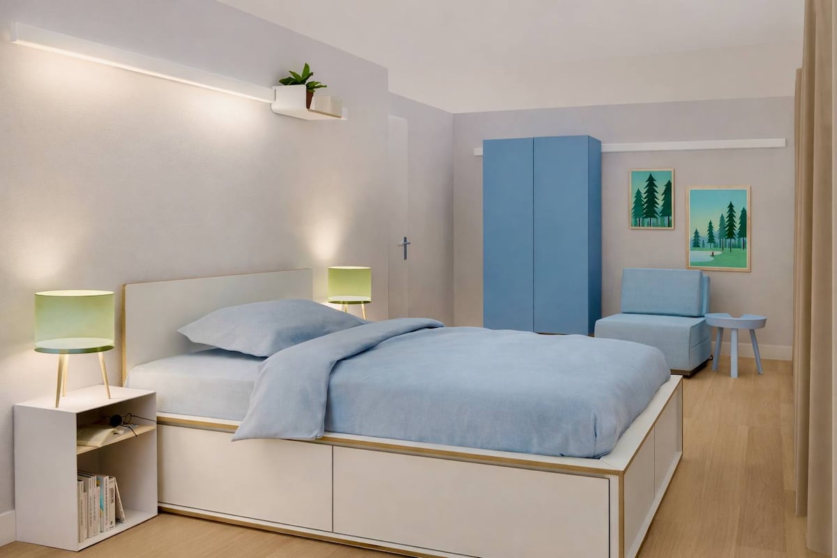 Holiday Apartment Bailey – Ideal for Families, Workers & Short-Term Guests Welcome to the cozy holiday apartment "Gartenblick" – your accommodation for up to 6 people on 60 m² of living space. The two lovingly designed bedrooms "Lavender" and "Rosemary" are each equipped with three single beds, TV, nightstands and wardrobe – ideal for families, workers or groups.