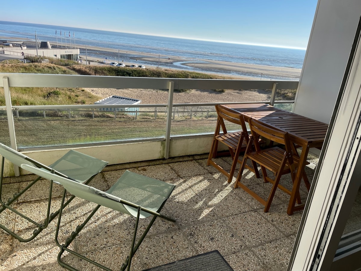 Dans résidence sécurisée, profitez d'un logement rénové entièrement élégant, calme et central. Situé sur la digue pietonne face mer avec un accés direct à la plage, 5ème étage, à 5 mn à pied des commerces, 3 mn à pied de la base nautique ; 5 mn en voiture des golfs d'Hardelot. Appartement de 2 chambres et 1 chambre cabine pour 4 à 6 personnes, tout confort et bien équipé. Grand balcon avec vue mer et balcon vue sur mont St Frieux. Parking.
