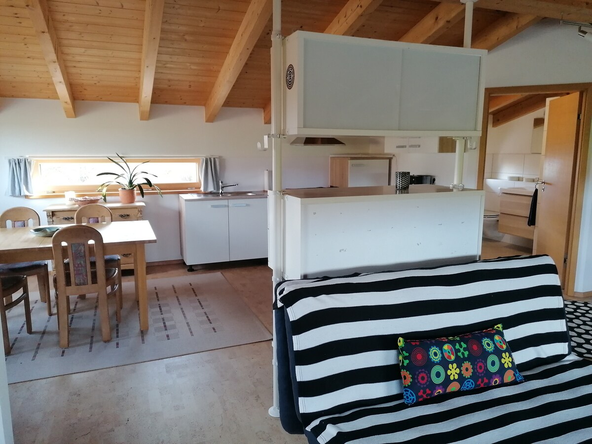 このアパートは、2023/24年に改装された指定建造物の大きな家の屋根裏部屋にあります(2022年に大火災が発生した後、家全体が一新されました)。設備が整っており、居心地が良く、お子様連れのご家族にも十分なスペースがあります。Wi-Fi、テレビ、遊戯スペースが備わっています。同様に、設備の整ったキッチンとシャワーとトイレ付きのバスルームもあります。犬を連れて行くことができます。家には2匹の猫がいます:ミミとサリー。