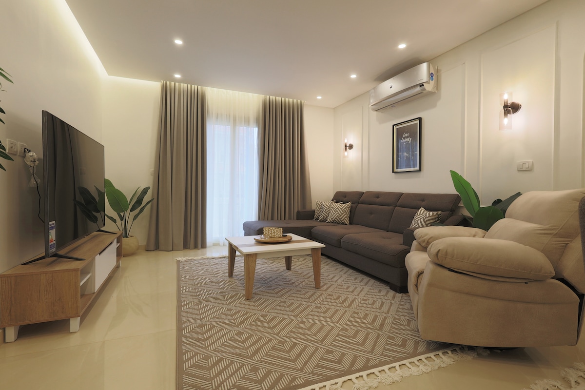 Spacious 250 sqm Apartment in a Secure Compound 🌟 Enjoy your stay in this modern, fully furnished 250 sqm apartment located inside a gated and secured compound, just 2 minutes from Mivida and Hyde Park. ✨ Highlights: • Spotlessly clean & well-maintained • Fully equipped with everything you need • High-speed Wi-Fi • Stylish, almost brand-new furniture • LG Sound Bar for an enhanced audio experience • Smart TVs connected to the internet • Hair dryer • Iron Perfect for families
