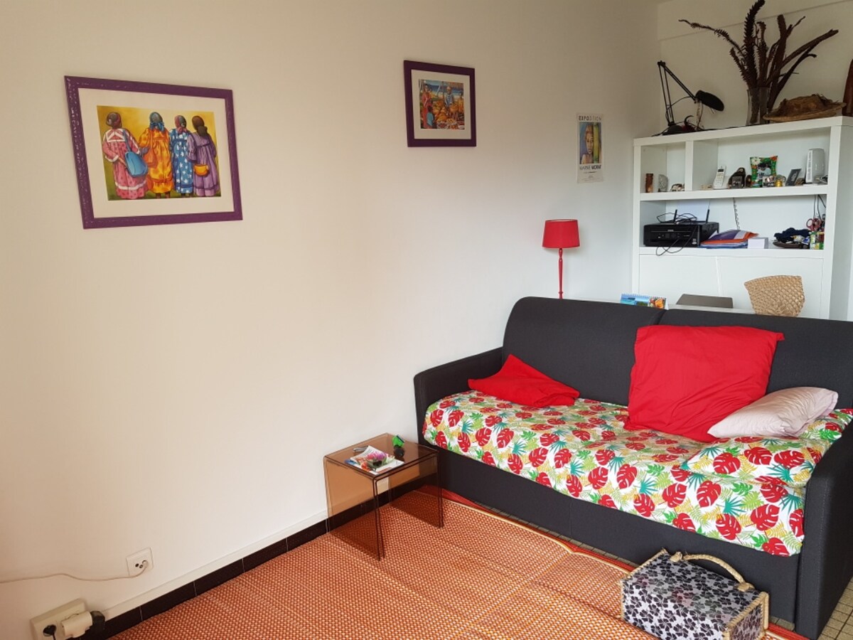 Vous cherchez un endroit tranquille, confortable où vous poser pendant vos prochaines vacances en Nouvelle-Calédonie ? Je suis au Faubourg Blanchot, un quartier à 10 mn à pied du bord de mer et 20 mn du centre-ville, je vous accueille dans un petit studio cosy, équipé d’un lit double, d’une cuisine aménagée, d’une salle d’eau et d’un petit canapé pour deux personnes supplémentaires. Wifi gratuit.