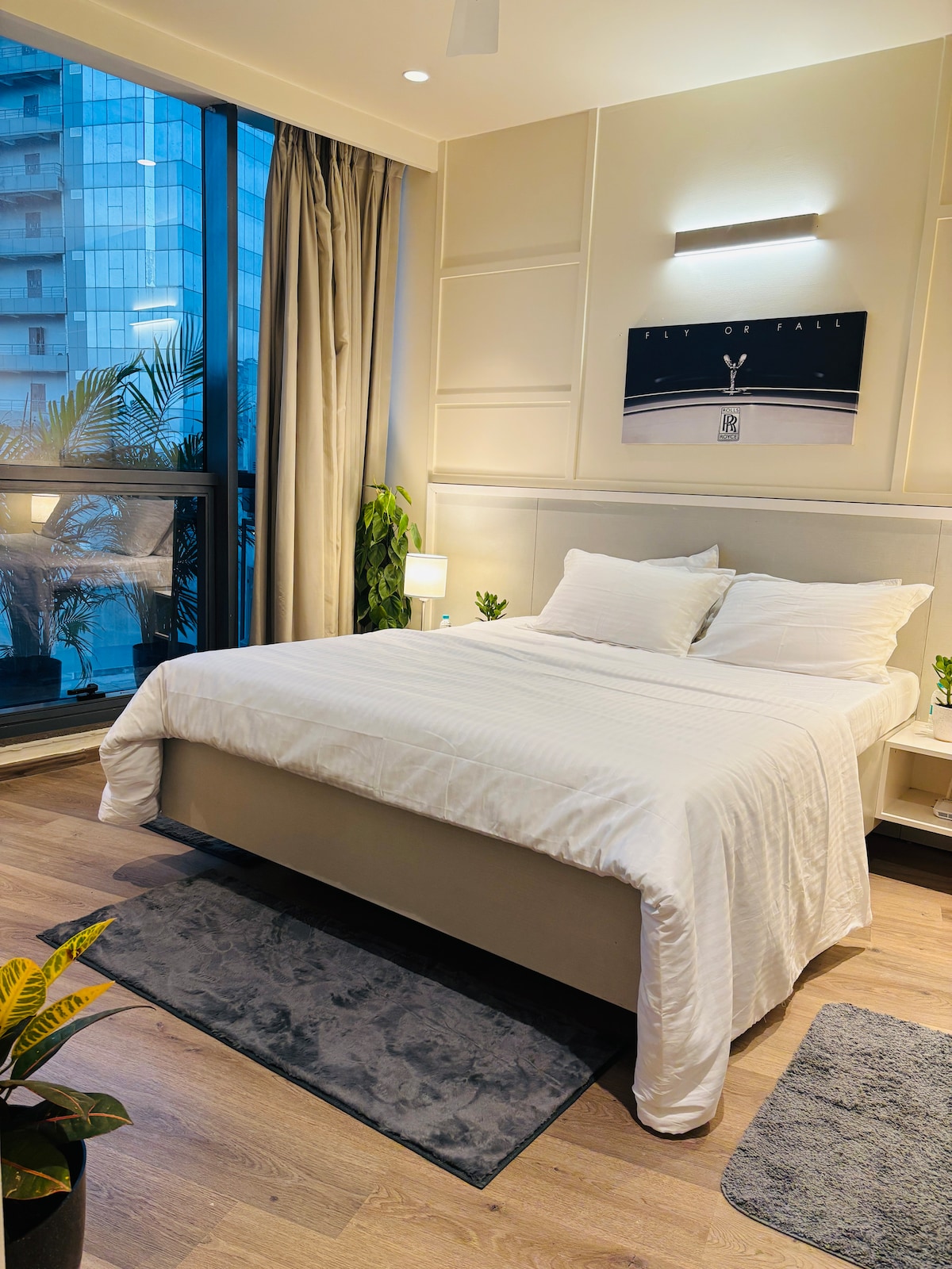 グルグラムの活気ある中心部にあるスタイルと洗練さの聖域、豪華な都会のワンルームへようこそ。 私たちのロフトの際立った特徴は、特別なブラックカラースキームで、お部屋にエレガンスとドラマを加え、快適で素晴らしい滞在をお届けします。 エレガントな家具が備えられたワンルームに足を踏み入れると、豪華なブラックのリクライニングチェアがあなたを迎えます。 これら2つの豪華なリクライニングチェアは、現代的なデザインと並外れた快適さが完璧に融合した、中心的な存在です。