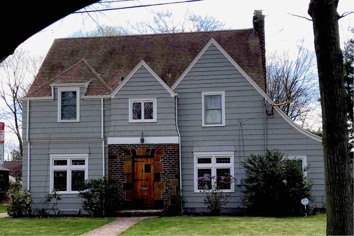 私たちの家族所有のニューヘイブンのバケーションハウスは、1920年代に改装されたチューダー様式です。 繁華街やイェール大学に近い静かで安全、かつ美しいエリアにあります。 私たちが愛する歴史的な側面(アールデコタイルと鉛ガラスの窓など)を慎重に保存し、セントラルエアコン、USBポート、新しい家電、ガス暖炉、高速Wi-Fiなどと組み合わせました。 また、小さなスクリーン付きのポーチ、椅子付きのパティオ、庭もご利用いただけます。 家と私道はまるごと貸切です。