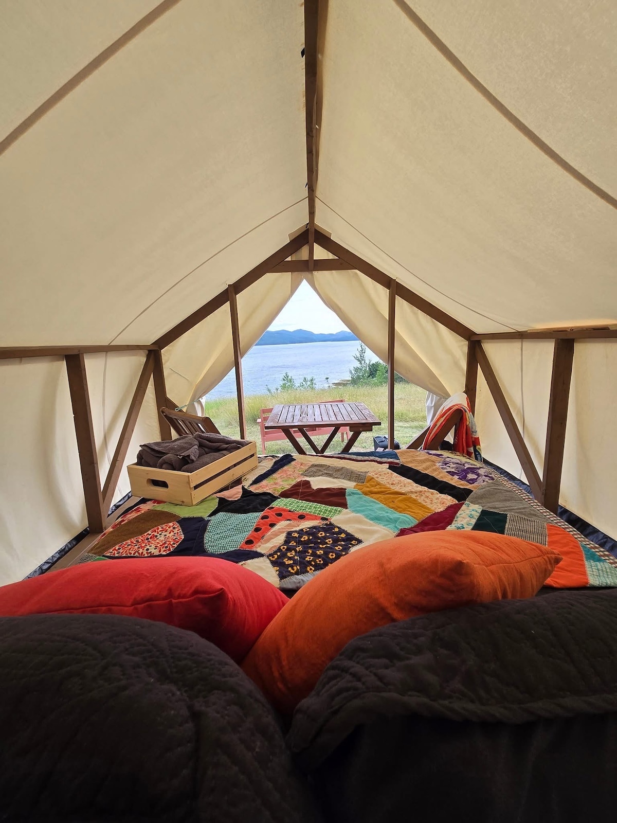 これまでになかった方法でニューファンドランド島を体験しましょう! このユニークでありながらモダンなスタイルのキャンプは、頑丈なキャンバスのサファリテントの中にあり、車椅子でもアクセスできる場所です! 快適なピロートップマットレスを備えたダブルベッド1台は、1日の終わりにぴったりです。 リネン、タオル、卓上バーベキュー、屋外用焚き火台、ピクニックテーブル、調理用品、食器、調理器具、食品用クーラーボックス。 必要なのは、食べ物、服、個人用の洗面用具だけです。 必要に応じてエアマットレスを置くスペースがあります。