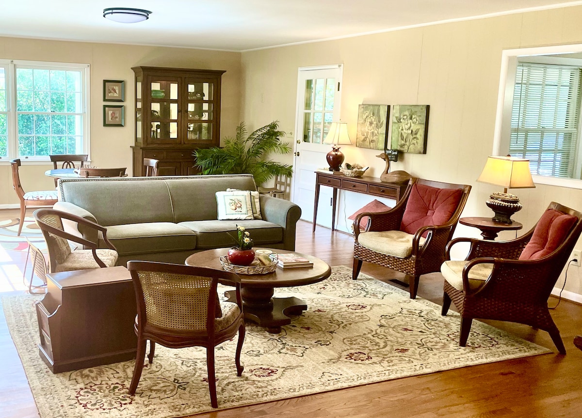 On a serene 5 acres our Good Vibes home offers comfort and convenience for your stay, event, and memories! Relax on Large 20 Ft Deck or entertain family and friends from the gourmet kitchen and prep room. If looking for a space to host an event or a weekend getaway, Good Vibes won't disappoint. Gatherings will incur a variable cleaning fee starting at $175. All celebrations welcomed including Baby Showers, Birthday Parties, Graduations INQUIRE even if date looks unavailable