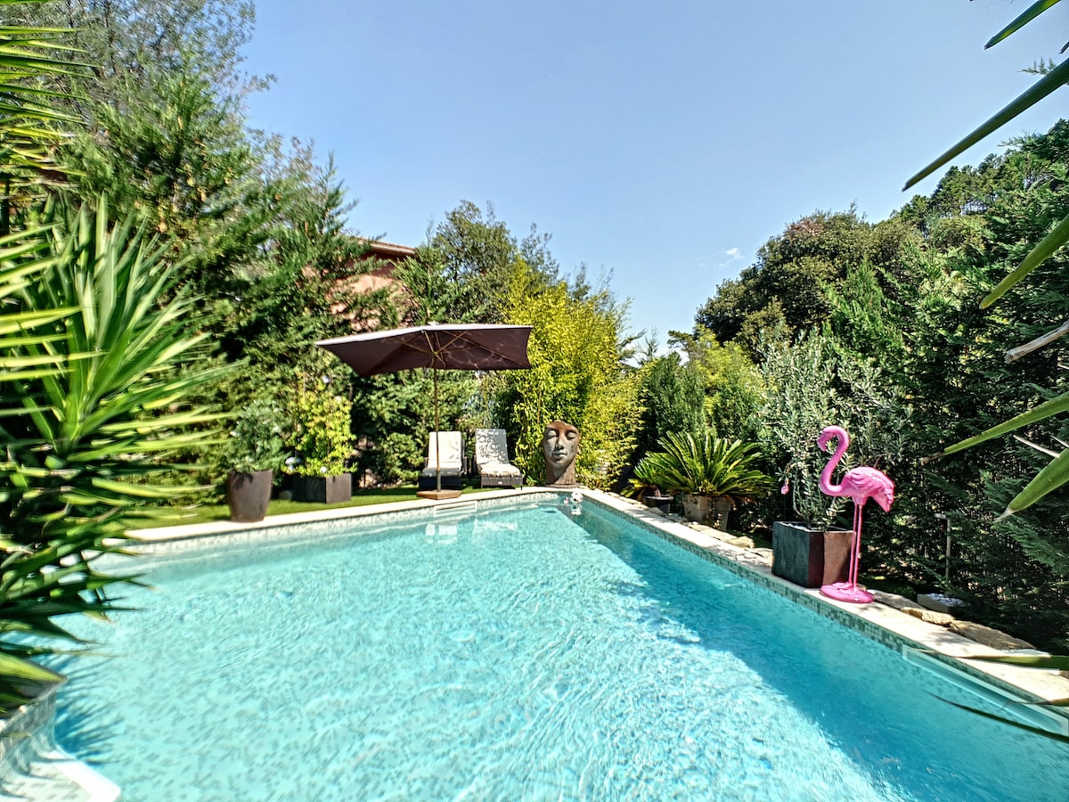 Charmant studio climatisé indépendant dans villa de charme au cœur de la nature roquefortoise. Accès libre à la piscine, table de ping pong, jardin et terrasse privative avec barbecue. Logement ideal pour un couple. Restaurants et commerces proches, de nombreux golfs à proximité, situation idéale entre Valbonne et st Paul de vence pour visiter la côte d'azur et son arrière pays. 20 mn de l' aéroport de Nice. Ambiance conviviale et chaleureuse .