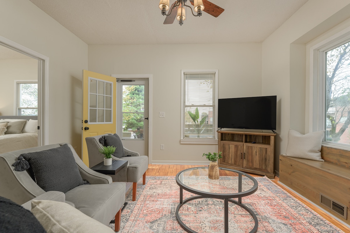 This airy-modern apartment is perfect for professionals, families, couples and individuals. - 5 min drive to Downtown - August App/Smartphone Access only - High-speed Internet - Fiber - Washer & Dryer - Youtube TV - Record unlimited Walking distance to: - Incline Railway - Hiking - Rock Climbing - River Walk - Running, Cycling - Buchanan's Barber Shop - Peace Strength Yoga - Goodman's Coffee - 1885 Restaurant - Tap House - Mr T's Pizza - Clumpies Ice Cream