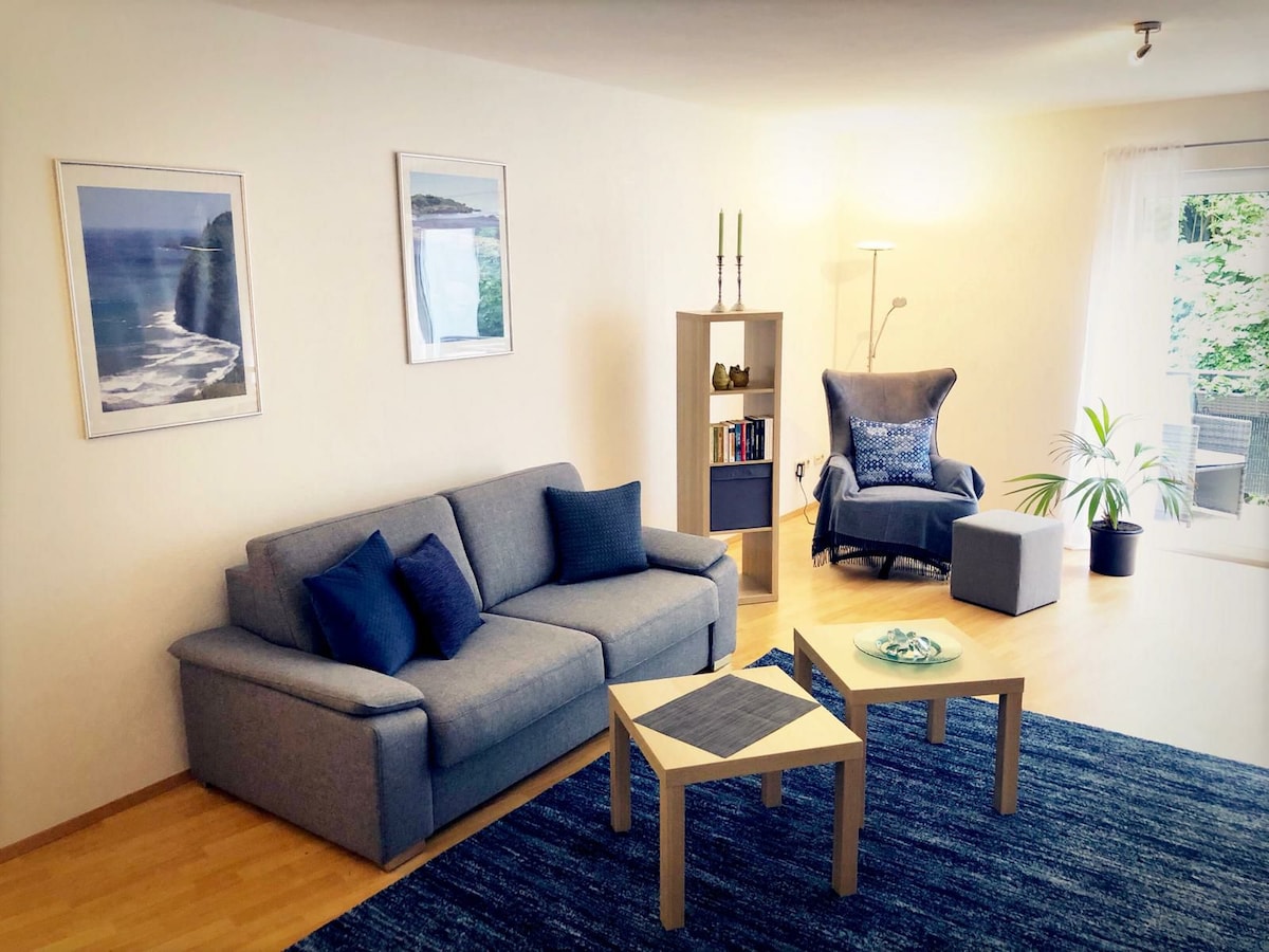 Comfortably furnished ** apartment (2 rooms, kitchen, bathroom, balcony) on the 1st floor on the outskirts of Niederburg, 50 meters from the forest. Access is from the car park through the garden via an external staircase. On sunny days, the small balcony and garden invites you to linger outdoors or for a leisurely barbecue.