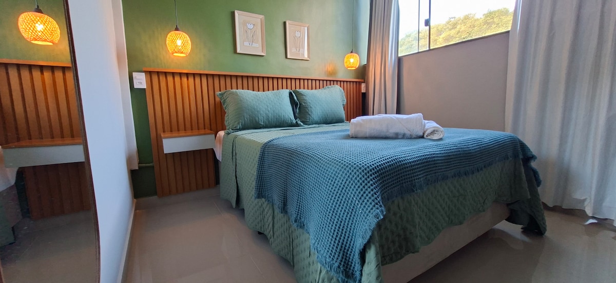 こんにちは! HenriqueとLetíciaです。こちらはSuíte Alecrimです。イカライビーチの遊歩道からわずか50メートル、薬局、ベーカリー、レストランなど、滞在に必要なものが徒歩圏内にあります。 当スイートは、ゲストを丁寧にお迎えするために考え抜かれたデザインのスタジオスタイルのアパートです。最大3名様まで宿泊可能で、ダブルベッドとソファベッドが含まれています。