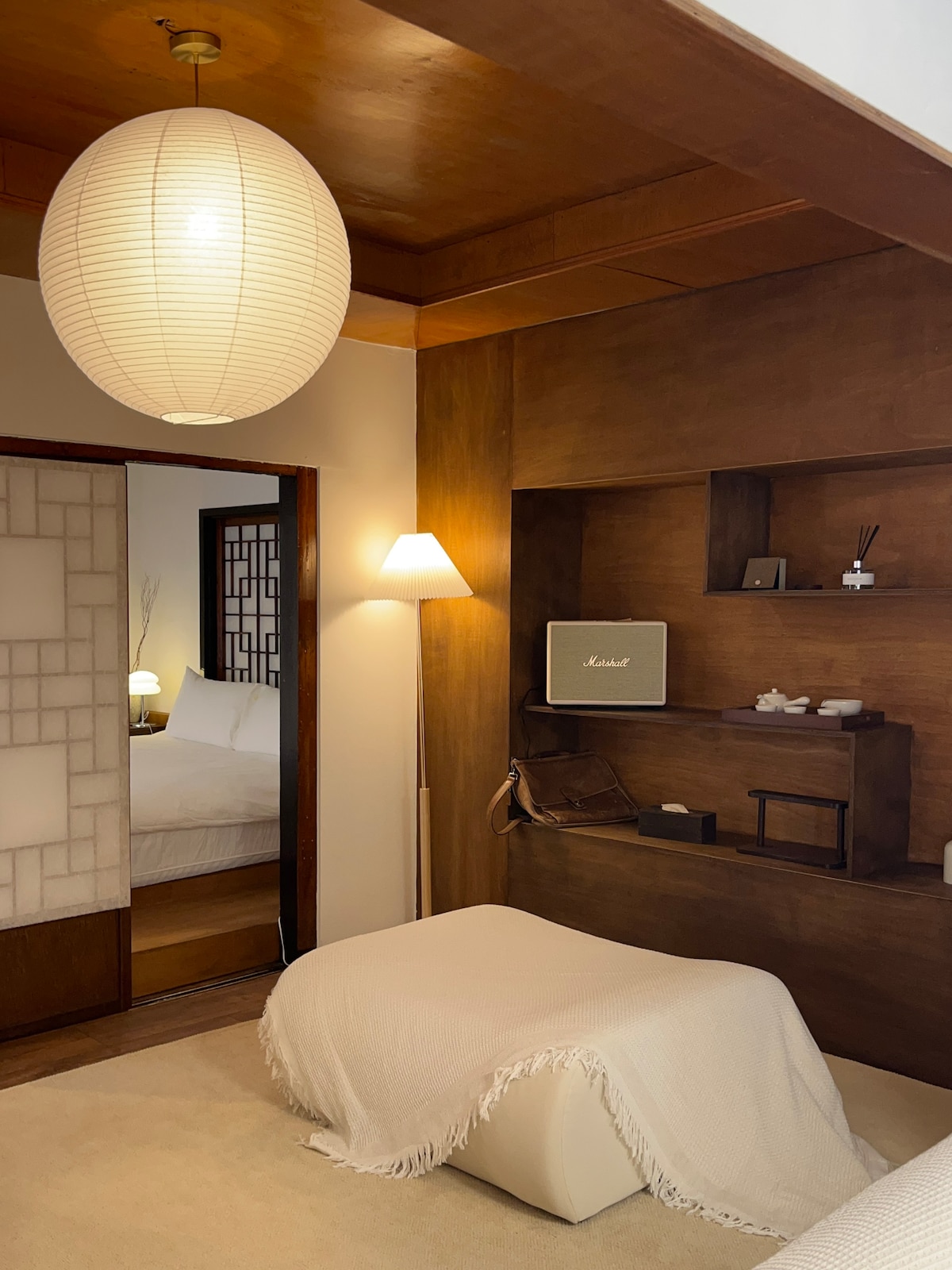 Yugahunは済州空港に近い伝統的な韓国の家(韓屋)です。メインハウスとアネックスがあり、芝生の美しい庭園は済州の石壁に囲まれています。ゲストは家全体を使用できますが、別館はオーナーがメンテナンスのために使用することがあります。 メインハウスには赤い松の木のインテリアが施された高い屋根梁があり、ゲストは韓屋の美しさを存分に楽しむことができます。庭には、柿、マルメロ、柑橘類などの果樹があり、秋にはたくさんの果物が実ります。