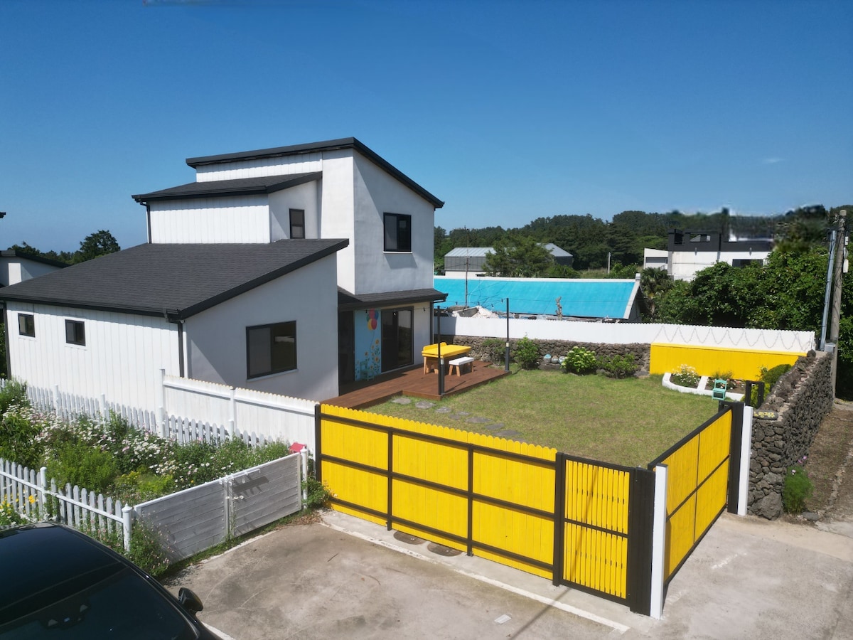 제주애월,노랑제주 2층 단독주택으로 개인 마당을 이용, 기본2~4인 최대인6까지 가능.