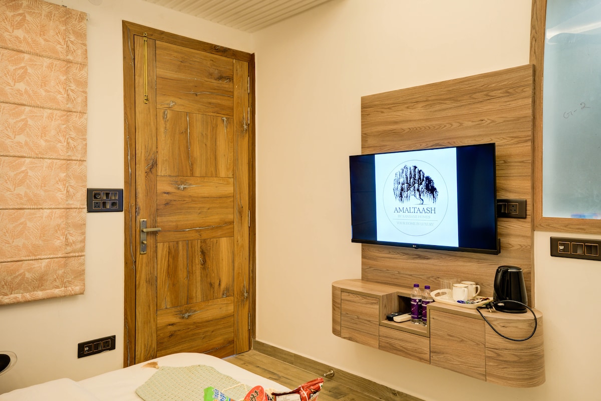 A regal room near the Buddh International Circuit offers opulence, premium amenities, and stunning views.