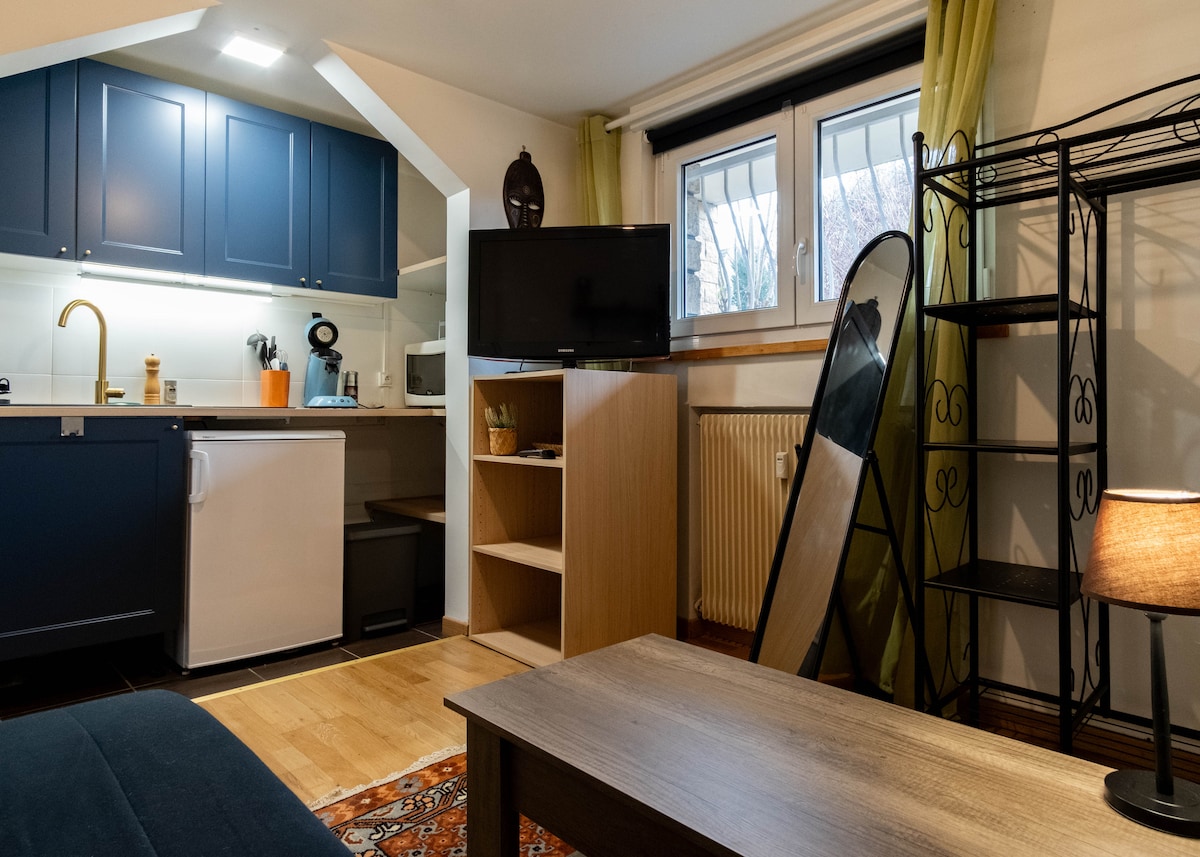 パリとその周辺を探索するのに理想的なロケーションにある、ノワジー・ル・グランにある私たちの魅力的なワンルームアパートへようこそ。 この居心地の良いモダンなワンルームは、快適さと利便性を求める旅行者に最適です。 快適なソファベッドを備えた明るいリビングスペース。 設備の整ったキッチン。 タオルが用意されたモダンなバスルーム。 無料Wi-Fi接続。 公共交通機関に近い:スタジオから徒歩数歩のところに303番と220番のバス停があります。近隣の駅はRER A線のブリー・シュル・マルヌ駅です。徒歩15分です。