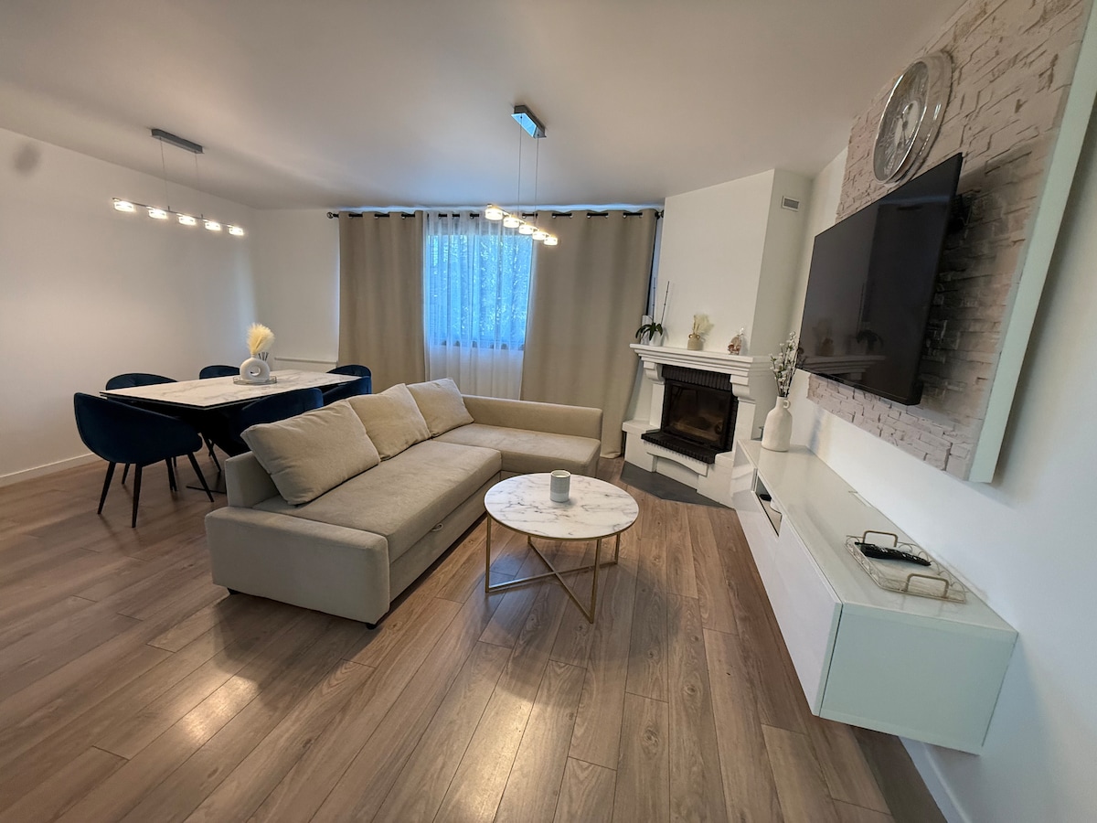CASALOVAへようこそ。CASALOVAは、ホームシアター、巨大スクリーン、丸いキングサイズベッド、高級大理石キッチン、2人用ジャグジーとイタリア式シャワーを備えたスパ並みのバスルームを備えた、ユニークなデザインの贅沢な隠れ家です。 温かみのある雰囲気、シックな植物デコレーション、プレミアムサービス。 ロマンチックな滞在やリラックスしたひとときに最適です。 カサロヴァの魅力に身を任せ、温かくエレガントな環境の中で忘れられないリラックスしたひとときをお楽しみください。