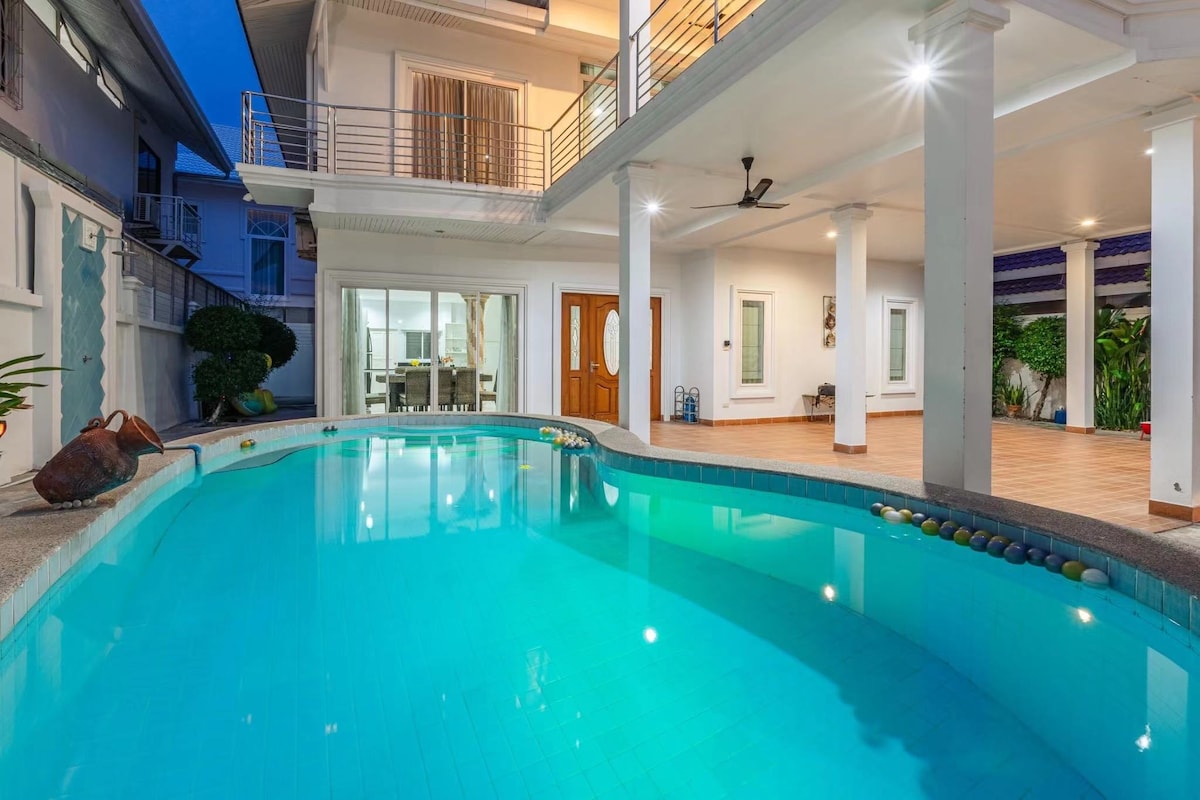 ゲストのお気に入りと評価されたラグジュアリープールヴィラは、家族連れ、お友達のグループ、楽しみを求めるパーティー旅行者に最適です。バスルーム付き。 のんびり午後を過ごすためのプライベートプール。シャンプー&シャワージェル、タオルをご用意しています。バーベキュー、カラオケ、ビリヤード台。屋内エリアにはエアコンがあります。 パタヤビーチとウォーキングストリートまで車で6 kmです。GRABまたはBOLTアプリの車は24時間365日、午前4時から6時(パーティー時間後)でもご利用いただけます。 食事、飲み物、観光スポット、夜のイベント、隠れた名所をご紹介します。
