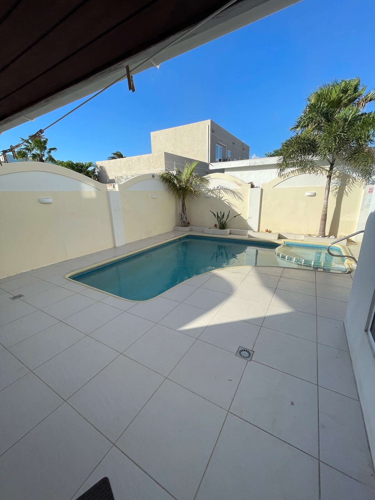 Cute townhouse perfect for a relaxing time, overlooking Hooiberg. Enjoy a beautiful tropical garden with a backyard and pool, ideal for a nice breakfast or coffee. Listen to birdsongs and feel the tropical breeze in the front garden, backyard, or by the pool. Conveniently located a 5-minute car ride from the airport, with the bus stop just a 10 to 15-minute walk away. Surfside Beach and local bars are within a 20 to 30-minute walk, and Oranjestad is a 15-minute drive