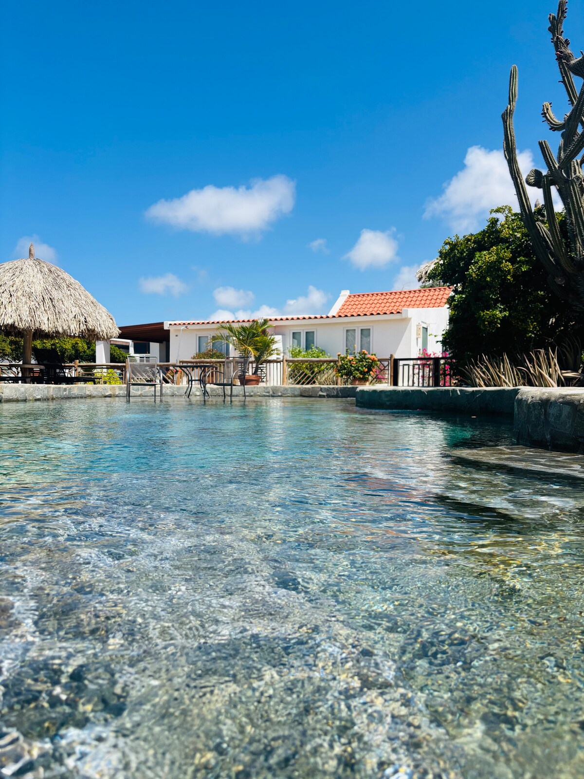 Kamay Hideout is an oasis of serenity nestled within a spacious garden combining native plants, trees and tropical flowers with beautiful art. The firm breeze and the canopy of the trees create a pleasant habitat. The original Aruban Cunucu farm house has been skillfully converted into well insulated luxurious garden suites with Bali style solid teak furniture. You are just a few steps away of the amazing pool with its own beach and palapas A real vacation paradise.