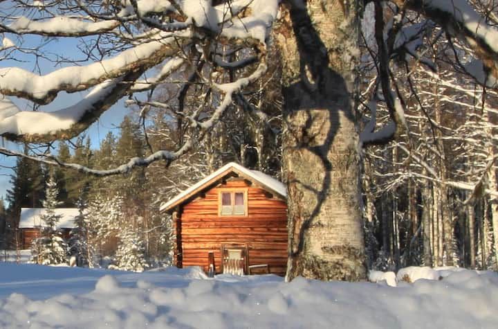 バーチの森の端にある静かな場所にある、薪ストーブ、キッチン、ダブルベッドとシングルベッドを備えた、愛情を込めて建てられたログハウスです。ここでは、居心地の良さと冒険が一つ屋根の下で楽しめ、もちろん寝室からオーロラを見るチャンスもあります。完全に設備されたキッチン、ダイニングエリア、そしてストーブの前にある居心地の良いラウンジエリアが、ログハウスの魅力を完成させています。また、小屋には電気もあります。