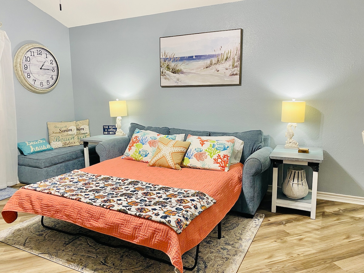 ノースパドレアイランドの1階にある新しく改装されたワンルームで、ビーチまで徒歩わずか5分の静かな休暇をお楽しみください。 この居心地の良いコテージは、時代を超越した美しいデザインが特徴で、キングサイズベッドとクイーンサイズのソファーベッドがあり、最大4名様まで宿泊可能です。 また、フルキッチン、バスルーム、ダイニング、リビングエリア、4 Kテレビもご利用いただけます。 プール、ホットタブ、サウナ、ジム、バーベキューなど、多くの共有コンドミニアムアメニティがあります。 今すぐ静かなビーチでの休暇をお楽しみください!