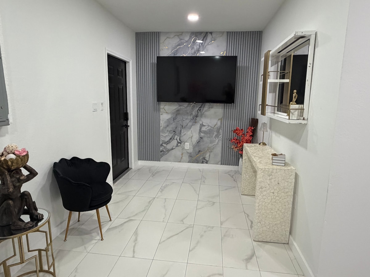 プライベートスイートで、比類のない贅沢と快適さをご体験ください。クイーンベッドまたはクイーンソファベッドでゆっくりお休みください。55インチテレビをお楽しみいただけます。快適な読書椅子でくつろぐこともできます。フルサイズの冷蔵庫を備えたコンパクトなキッチンは便利で、スパ風のバスルームにはアーチ型の窓の下に彫刻のような独立型バスタブ、ダブルレインシャワー、デュアルシンクがあり、太陽光が空間を暖かく照らします。専用の、完全にフェンスで囲まれた静かなパティオに足を踏み入れ、静謐な優雅さと落ち着きに浸ってください…
