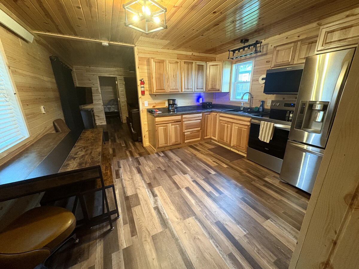 「バーサのキャビン」は、杉の壁とメープルの床、さらにはバーサおばあちゃんの時代のオリジナルの煙突で時代を遡ることができます。 同時に、モダンなバスルームとキッチンのアメニティをお楽しみいただけます。 クイーンベッドがあります。寝具とタオルはご持参ください。リクエストに応じてアップグレードが可能です。 外に出ると、ハイキングコースと数千エーカーの森林管理用地があります。 お友達やご家族を近くの「アンドリューキャビン」やシェイエンオークスキャンプ場のRVキャンプ場に招待しましょう。