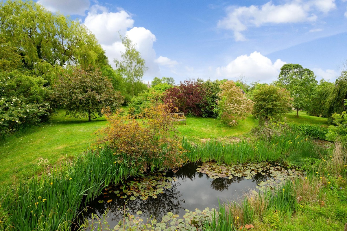 こちらの静かでおしゃれなお部屋で、のんびりとおくつろぎください。 魅力的で平和な村のロケーション。 セルフケータリングの別館で、1人または2人に最適です。 隣接しているものの、メインハウスとは別の建物です。パビリオンと呼ばれるのは、かつてこの庭が村のボウリンググリーンだったためです。 ナショナル・トラスト・チューダー時代の鳩舎と厩舎の素敵な景色をお楽しみいただけます。 川沿いの散歩、サイクリング、ウォータースポーツに最適な拠点です。 メインラインのBedford駅とSandy駅まで車で15分です。