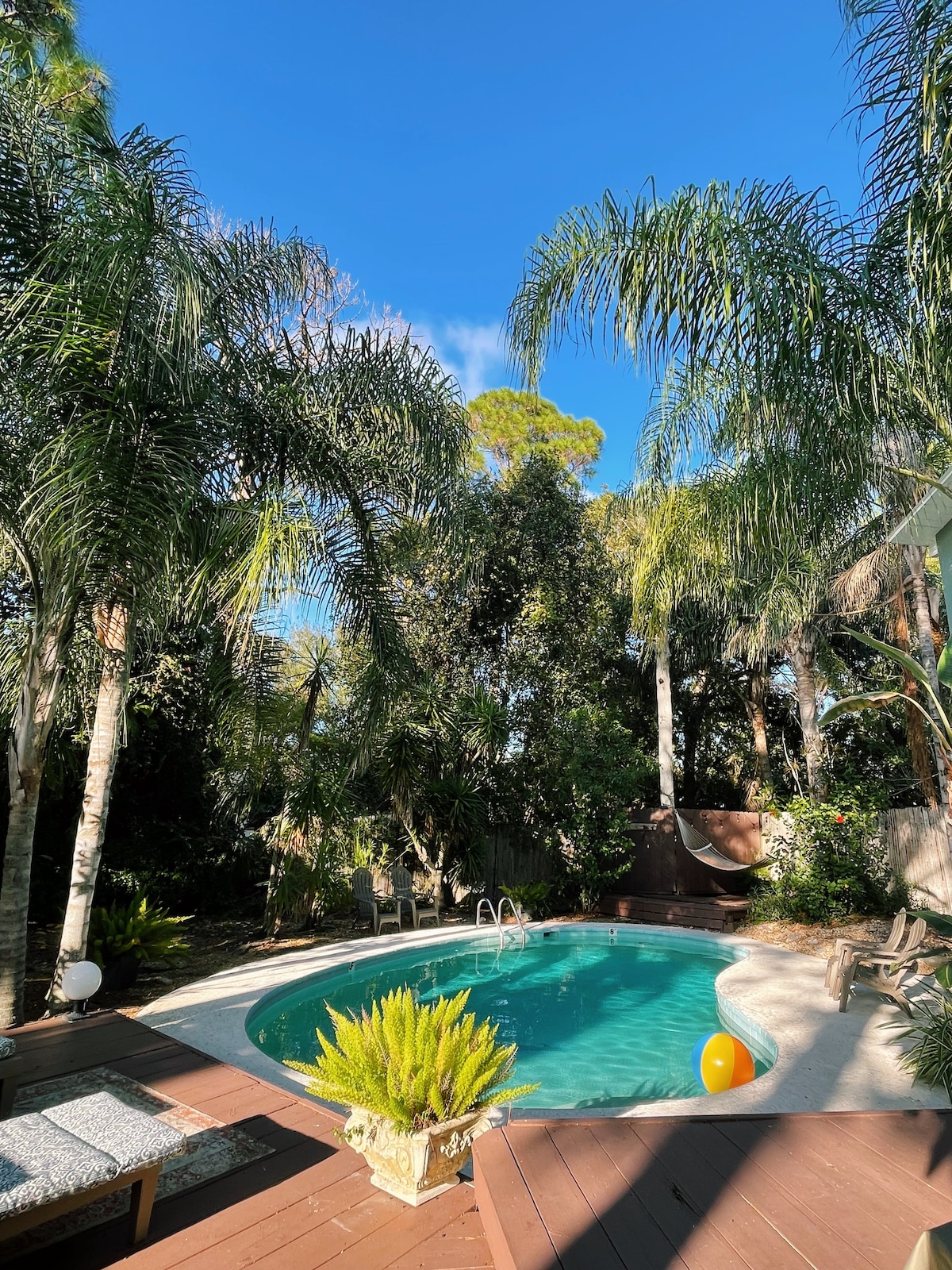 フロリダ州トレジャーコーストにある活気あふれるトロピカルオアシス、レインツリーハウスへようこそ。 この3ベッドルーム、2バスルームのツリーハウススタイルのキャビンは、大きなプールがある超プライベートな裏庭が特徴で、成熟したヤシの木に囲まれています。 70年代にインスパイアされた芸術的な装飾、杉の壁、オープンフロアのレイアウトで、このレジデンスは友達とのリラックスした休暇のために作られました。 ビーチに行くにも、おしゃれなフォートピアースのダウンタウンを探索するにも、プールサイドで休暇を過ごすにも、レインツリーハウスはフロリダの完璧な慰めです。