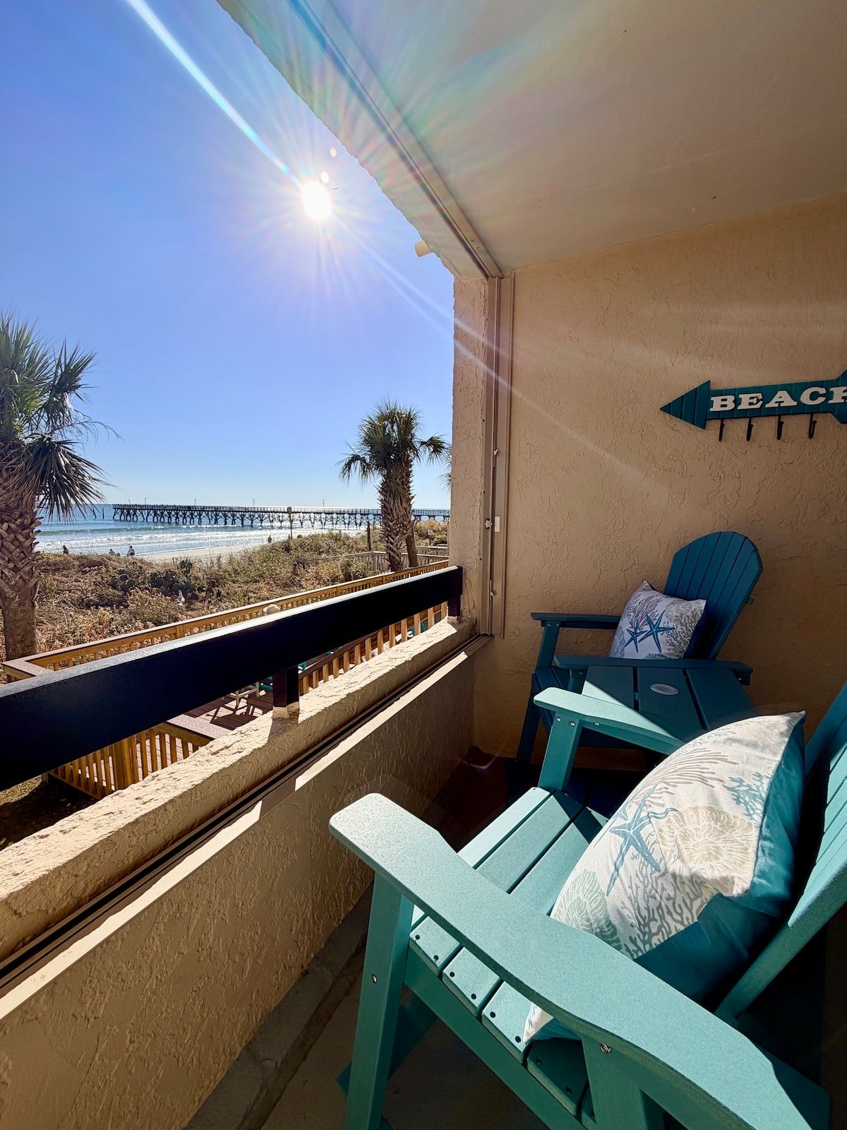 ビーチに面しており、マートルビーチのあらゆる場所に近いです!海からわずか数歩の、美しく改装されたコンドミニアムをお楽しみください。 ビーチのブロードウェイ(車で5分)、リプリーズ・ビリーブ・イット・オア・ノット(車で3分)、MBコンベンションセンター(1マイル離れていて歩いて行けます)、スターバックス(徒歩1分)、その他のレストラン多数、そして素晴らしいMBボードウォーク(徒歩2分!)に近いです。 このコンドミニアムはボードウォークからすぐの場所にあります。