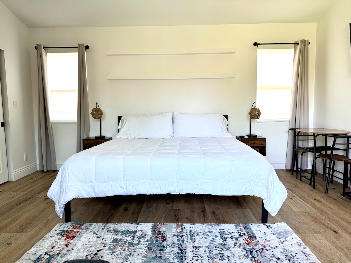 新しく改装されたカリフォルニアスイートへようこそ! ディズニーランド、エンジェルズスタジアム、ニューポートビーチ、ハンティントンビーチ、サウスコーストプラザ、チョック、メインプレイスモール、オレンジサークル、アーバインスペクトラムなどに近い、歴史的なパークサンティアゴ近隣をお楽しみください。 こちらは真新しい500平方フィートの広いワンルームです。 無料駐車場が十分にあり、読書やリラックスできる美しい屋外エリア、大型テレビ、エアコン、暖房、ランドリー、フルバスルーム、キューリグを備えた新しい設備の整ったキッチンがあります! リラックスして楽しんでください!