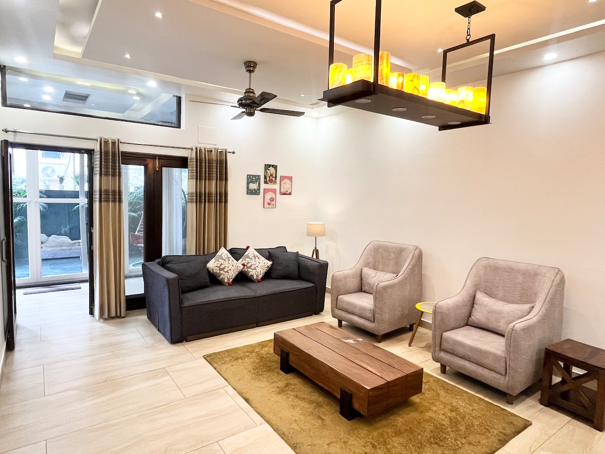 大きな(10フィート×24フィートの長さと4フィートの深さ)屋内プールとスタイリッシュに装飾されたリビングエリアを備えた豪華な場所。 大きなマスターベッドルームには、スイート内のバスルームにプライベートジャグジーがあります。 ポッシュサウスデリー地区に位置しており、便利です。ロータステンプル、クトゥブ・ミナール、ハウズ・カースなどの主要な観光スポットに近いです。セレクトシティモール、GK、シャープルジャットなどのショッピングハブ。 地下鉄駅から5分 インスタ - micassohomes 空港からUberで30 ~ 40分、地下鉄でもアクセス可能です。