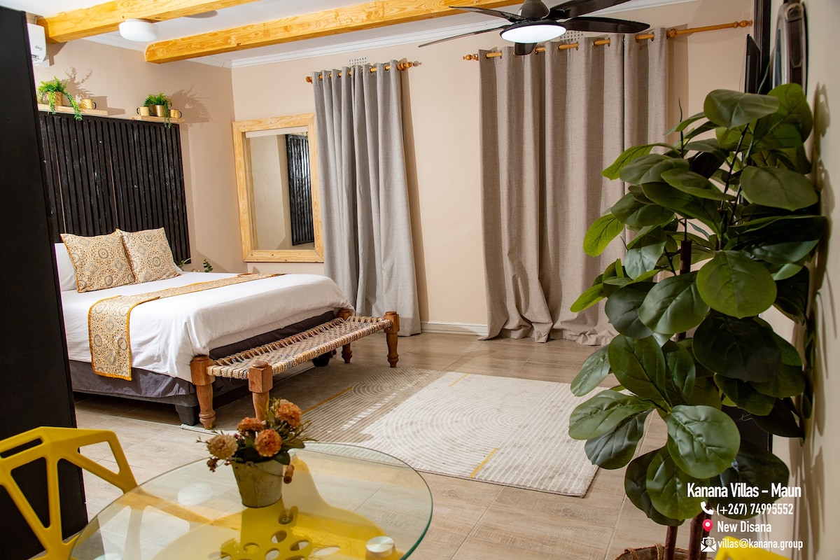 休暇や出張に最適なスタイル、快適さ、利便性の完璧な融合を体験してください。 スタイリッシュなベッドルーム2室、広々としたオープンプランのキッチン、居間が含まれています。 マスターベッドルームには隣接するパティオがあります。 その他のハイライトとしては、2つ目の家具付きパティオにつながるダイニング/バースペース、すべての寝室に設置されたワークステーションデスクなどがあります。 無料Wi-Fi、警報モニタリング、ガード、DSTV 近くには次のものがあります: モツアナセンター&アートカフェ -オールドブライドバックパッカーズ -クロコダイルキャンプサファリ&スパ -クレスタマウン