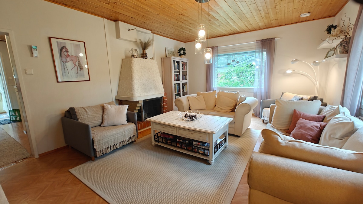 ãªãŠã«åžå äžå¿éšè¿ãã®å¹³ç©ãªæ»åšå â ãµãŠããšã«ãŒããŒãä»ãã®ãã©ã€ããŒãããŠã¹ããªãŠã«äžå¿éšããããã2 kmã®éããªKarjasiltaãšãªã¢ã«ãã2024幎建ç¯ã®äžè»å®¶ã§ããã©ã€ãã·ãŒããæ¥œãã¿ãã ããããã®å®¶ã«ã¯å ±æã®å£ãéè¡ããè»ã¯ãªããçã®éãããæäŸããŸããå°çšãµãŠããšã·ã£ã¯ãŒ2ã€ãåããåºã ãšãããã¹ã«ãŒã ã§ãªã©ãã¯ã¹ããããå±å€ã®ãããã¿ããäºçŽãããã§ããŸãïŒ60ãŠãŒã/2æéïŒã160 cmã®ãããããããŸãã¯140 cmã®ãœãã¡ãããã§å¿«é©ã«ãäŒã¿ããã ããŸãããã®å®¶ã«ã¯ãããã³ãWi-Fiãã¹ããŒããã¬ããç¡æé§è»å ŽããããŸãã