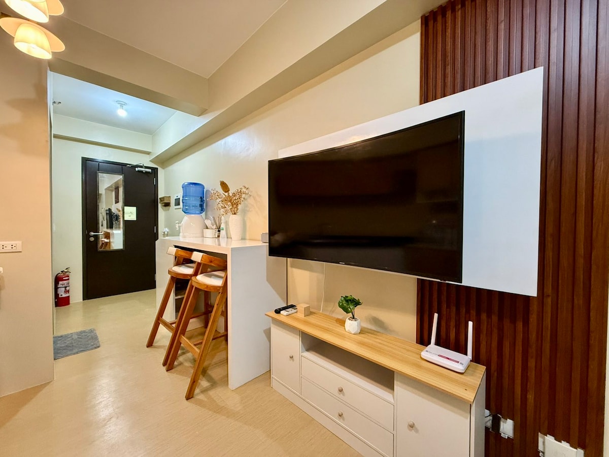 Good for family 4 Our newly open one bedroom unit is now open for guest! One bedroom unit condo Room is equipped with the following: * queen size Bed * sofa bed (2 ) * 2 split air-condition * Smart TV (with Netflix) 55 inches *Huge cabinet for clothes * Microwave * Wifi * Refrigerator * Rice Cooker * Induction stove * Cooking and Dining utensils * Dining table * sofa *hot and cold shower Amenities include: * Swimming Pool * Gym * 2 7/11 stores (1 opens 24 hours; 1 opens until 11pm)