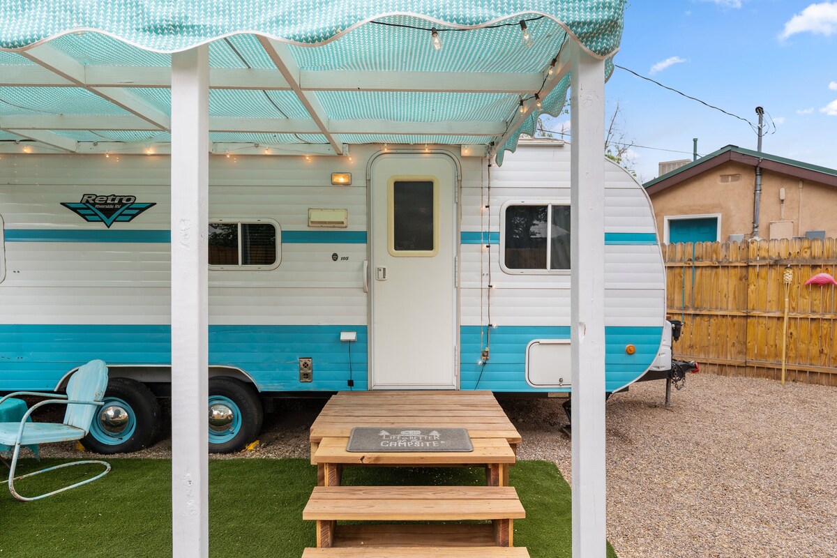 This cozy, romantic RV is a hideaway close to everything! Super secluded in the middle of town. This cutie pie is a Retro RV outfitted with all the modern conveniences including air conditioning, super comfy queen size bed, closet space, cooktop, microwave, full bathroom and even plenty of storage under the bed for suitcases. She has her own fenced in yard for full privacy and outdoor dining. Steps away from Albuquerque's Old Town and everything it has to offer.