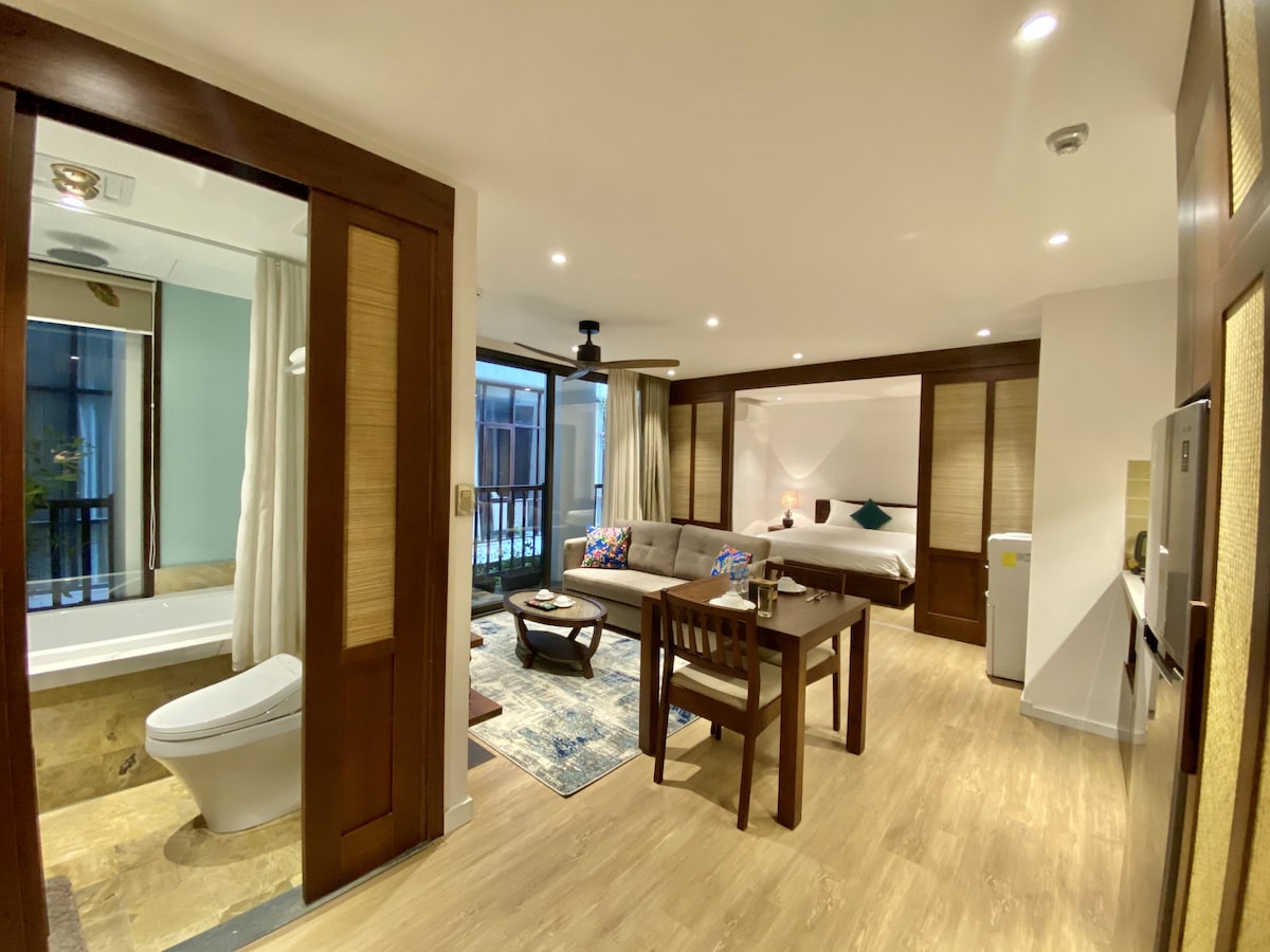 ホアンキエム湖まで徒歩わずか5分の静かなリゾートで、旧市街、トレインストリート、地元のレストラン、地元の市場まで徒歩圏内です。 エレベーター付きの地元の建物に囲まれたアパートには、広々としたリビングエリア、バスタブ付きの素敵なバスルーム、ワーキングデスク、無料の洗濯機/乾燥機があります。快適さと便利さを求めるカップル、ご家族、ビジネス旅行者に最適です。 ハノイでのアクティビティについて何かおすすめが必要な場合は、お気軽にご相談ください。