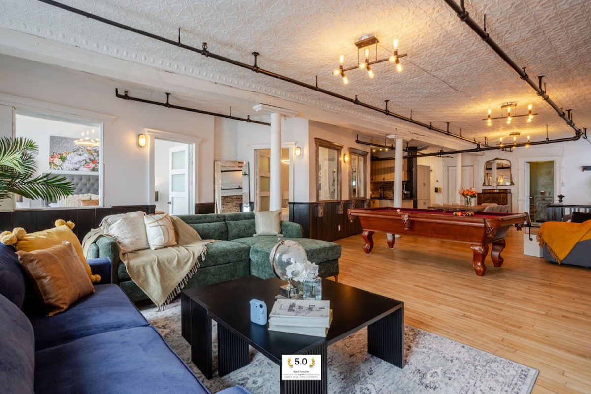 完璧な休暇スポットです!この広々としたロフトは4人で快適に過ごせ、モントリオール旧市街の中心部に位置しています。モダンとクラシックなデザインが融合し、とても楽しいテーブルサッカーもあります!チェックインはとても簡単で、ドアコードで出入りできます。隣には駐車場があり、料金は1日20~25ドルです。 このスペースは中心部にあり、周辺環境のため、騒音が発生しやすいことに注意してください。