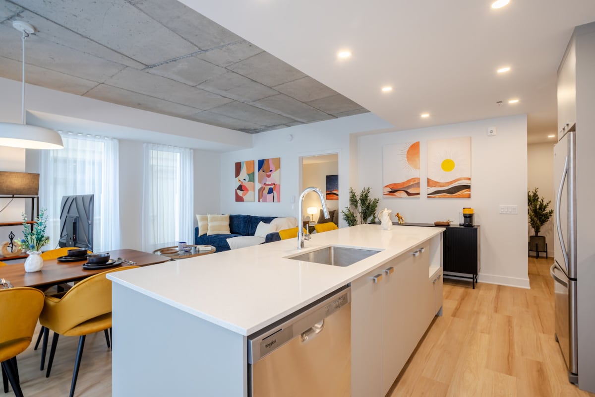 モントリオールのダウンタウン中心部にある、旧港からわずか数歩の素晴らしいモダンスイートへようこそ! このスタイリッシュなスイートは、洗練されたオープンコンセプトデザイン、高級感のある仕上げ、そして家庭料理に最適な設備の整ったキッチンを誇っています。豪華なベッドルームでは、豪華な寝具を備えた豪華なベッドでリラックスし、エレガントなリビングスペースでくつろぐことができます。 最高のレストラン、ブティック、ナイトライフがすぐそばにあり、快適さと街の興奮が完璧に融合しています!