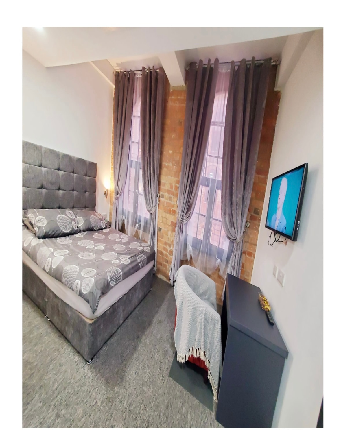 ノッティンガム市の中心部にある建物の裏手にあるモダンなワンルームで、静かです。 ビクトリアセンターとマーケットスクエアからわずか100mです。 ダブルベッドと専用バスルーム、AEGホブ、洗濯機・乾燥機、冷蔵庫、グリル電子レンジなどの高仕様キッチンも備えられています。 高速Wi-Fiインターネット、小さなソファ、4KスマートSamsung 40インチテレビ(回転自在)、革製バースツール付きバーテーブルが備わっています。 正面玄関の鍵ボックスから柔軟にセルフチェックインできます。
