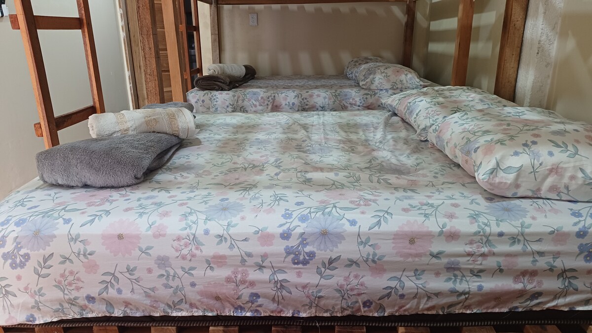 快適さと自然とのつながり。 ノヴォ・アイラン(Novo Airão)- AMの海岸に位置する家。 バスルーム、キッチン、バルコニー、ハンギングチェア、レジャーエリア、そしてたくさんの木々があります。 専用駐車場があり、市内の主要観光スポットに近いです。 街中にいながらも森を体験できる快適さと、おばあちゃんの家のような愛情と温かさを一緒にしました。 世話をし、癒し、祝福を与えるおばあちゃんのように、ここを訪れる人々にも「祝福」をお与えします。